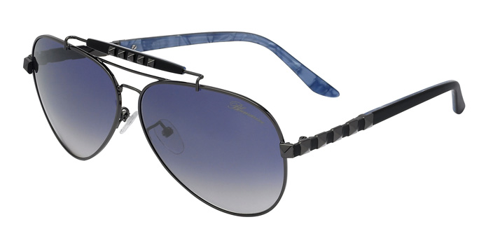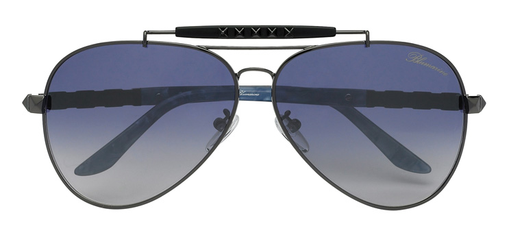 Classico e moderno si fondono anche nella collezione Eyewear di Bluemarine, che si rivolge a donne dalla personalità forte con i suoi occhiali da sole glam-chic. Due i temi principali: i gioielli che donano luminosità e i colori, DNA della Maison. Di tutt’altro tenore il Wild Punk, di chiara ispirazione Sixties. I colori maculati si combinano ad uno stile glam-punk grazie all’impiego di borchie dorate che profilano le aste e  personalizzano il frontale. Sempre cavalcando l’onda musicale, Bluemarine presenta una nuova capsule collection, Punk Chic, che punta a far rivivere una delle tendenze più cool degli anni Ottanta. Occhiali da sole con un’anima dark per spingere ogni donna ad affrontare la quotidianità con grinta e determinazione.