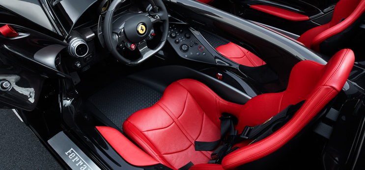 L’architettura dei due modelli si presenta come quella di un bolide dalla forma monolitica e aerodinamica a profilo alare, dove la completa assenza del padiglione ha consentito di definire proporzioni uniche, impensabili su una spider tradizionale. L’ebbrezza della velocità che ne deriva, finora riservata quasi esclusivamente ai piloti della Formula 1, è direttamente legata al concetto di un cockpit scavato nel volume della vettura, che accoglie il pilota e tutta l’interfaccia di guida.