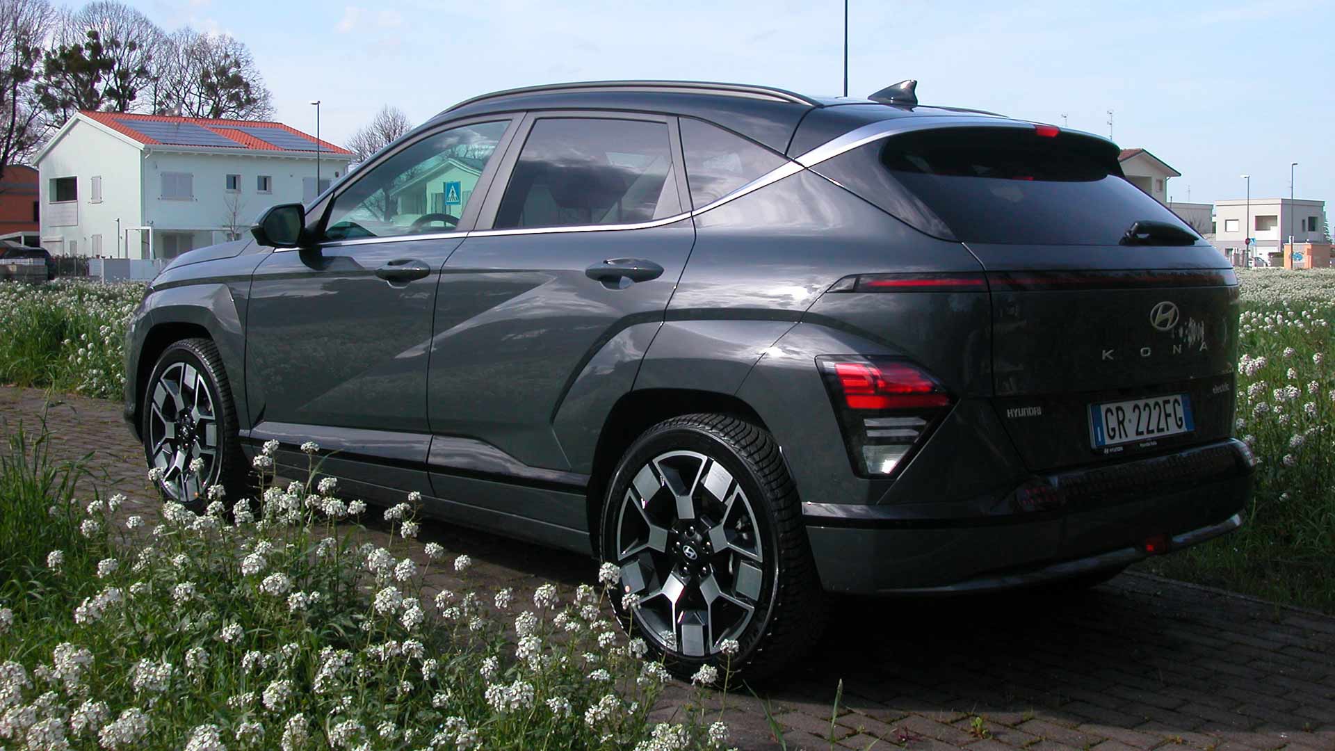 Fuori città, su percorsi misti e tratti veloci, la Kona Electric mette in mostra un telaio più maturo rispetto alla generazione precedente, grazie al passo allungato e allo schema sospensivo con McPherson all’anteriore e Multilink al posteriore. La vettura rimane neutra e prevedibile anche quando si forza il ritmo, con un rollio contenuto e una trazione che, pur chiamata a gestire subito tutta la coppia, viene tenuta a bada in modo efficace dall’elettronica. Non si tratta di un’auto pensata per la guida sportiva pura – peso e taratura privilegiando comfort lo ricordano – ma le prestazioni sono di tutto rispetto: a seconda della versione, lo 0–100 km/h si attesta nell’ordine dei 7,6–8,2 secondi, valori che rendono brillanti sorpassi e riprese, in linea con le migliori concorrenti elettriche del segmento.