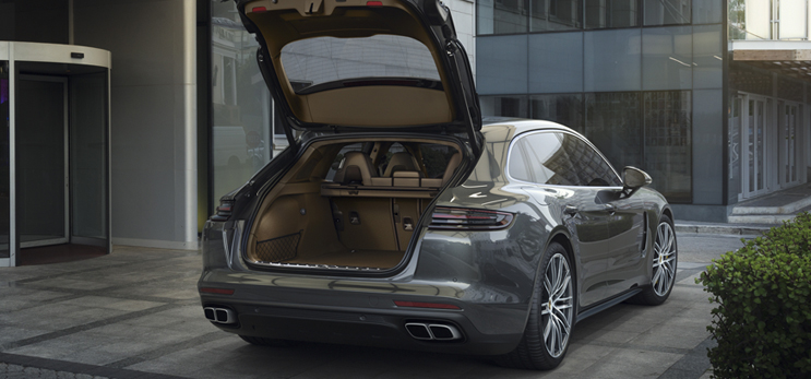 Nella Sport Turismo, la linea del tetto più alta facilita l’accesso alla vettura nella zona posteriore e assicura uno spazio nettamente più ampio nella zona della testa. L’ampia apertura del portellone posteriore, ad azionamento elettrico di serie, e il bordo del vano di carico alto solo 628 mm, rendono molto più semplici le operazioni di carico del vano bagagli. Fino al bordo superiore dei sedili posteriori, la Sport Turismo offre un volume di carico pari a 520 litri (la Panamera 4 E-Hybrid Sport Turismo: 425 litri), ben 20 litri in più rispetto alla berlina sportiva. Caricando il vano bagagli fino al tetto e con i sedili posteriori ribaltati, il volume di carico aumenta di circa 50 litri. Gli schienali dei tre sedili posteriori possono essere reclinati separatamente o completamente (rapporto 40:20:40), lo sblocco dal vano bagagli è elettrico. Con tutti gli schienali reclinati, la superficie di carico è pressoché piatta. In questo caso, il volume di carico aumenta fino a 1.390 litri (Panamera 4 E-Hybrid Sport Turismo: 1.295 litri).